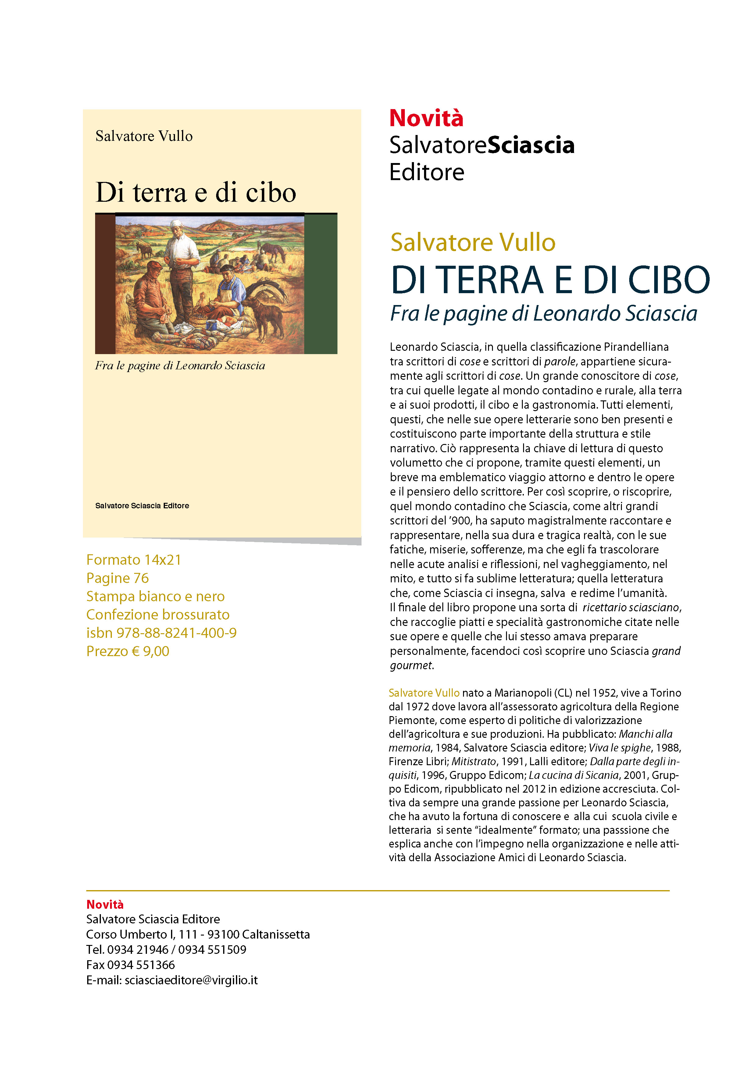 Per così scoprire, o riscoprire, quel mondo contadino che Sciascia, come altri grandi scrittori del '900, ha saputo magistralmente raccontare e rappresentare, nella sua dura e tragica realtà, con le sue fatiche, miserie, sofferenze, ma che egli fa trascolorare nelle acute analisi e riflessioni, nel vagheggiamento, nel mito, e tutto si fa sublime letteratura; quella letteratura che, come Sciascia ci insegna, salva e redime l'umanità. Il finale del libro propone una sorta di ricettario sciasciano, che raccoglie piatti e specialità gastronomiche citate nelle sue opere e quelle che lui stesso amava preparare personalmente, facendoci così scoprire uno Sciascia grand gourmet.