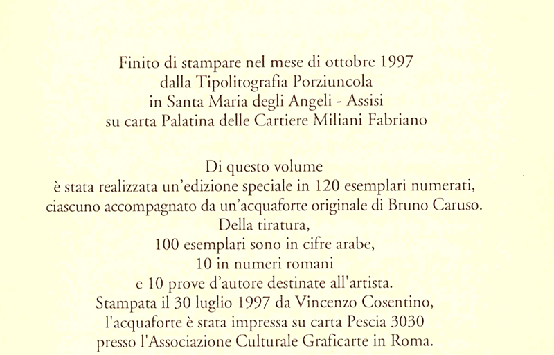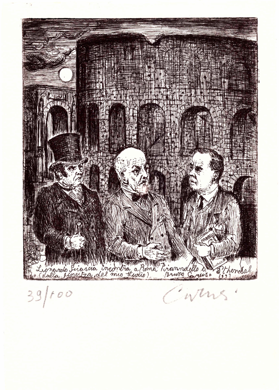 Bruno Caruso “Le giornate romane di Leonardo Sciascia”, Milano,1997,144 pp. [Collana “Porte aperte, 3] Edizione speciale, con un’incisione originale all’acquaforte di Bruno Caruso, numerata e firmata, tirata a complessivi 120 esemplari