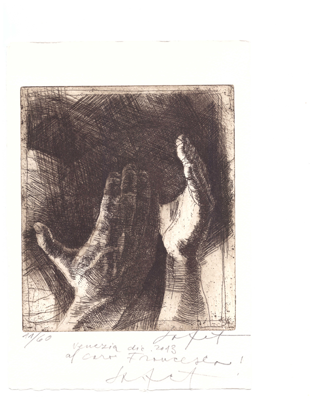 Nino De Vita “Il cuscùs dolce”, Valverde 1999, pp. 4, [Collana “Valverdina”] in 200 esemplari, con un’incisione originale all’acquaforte di Vincenzo Piazza, numerata e firmata dall’artista, tirata a 100 esemplari